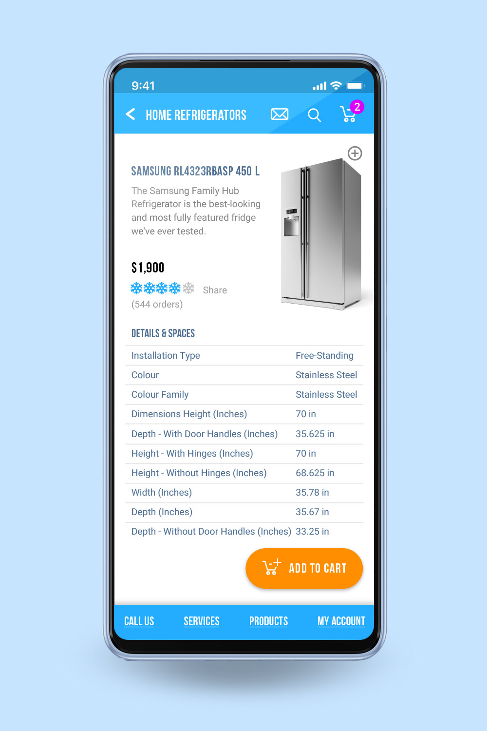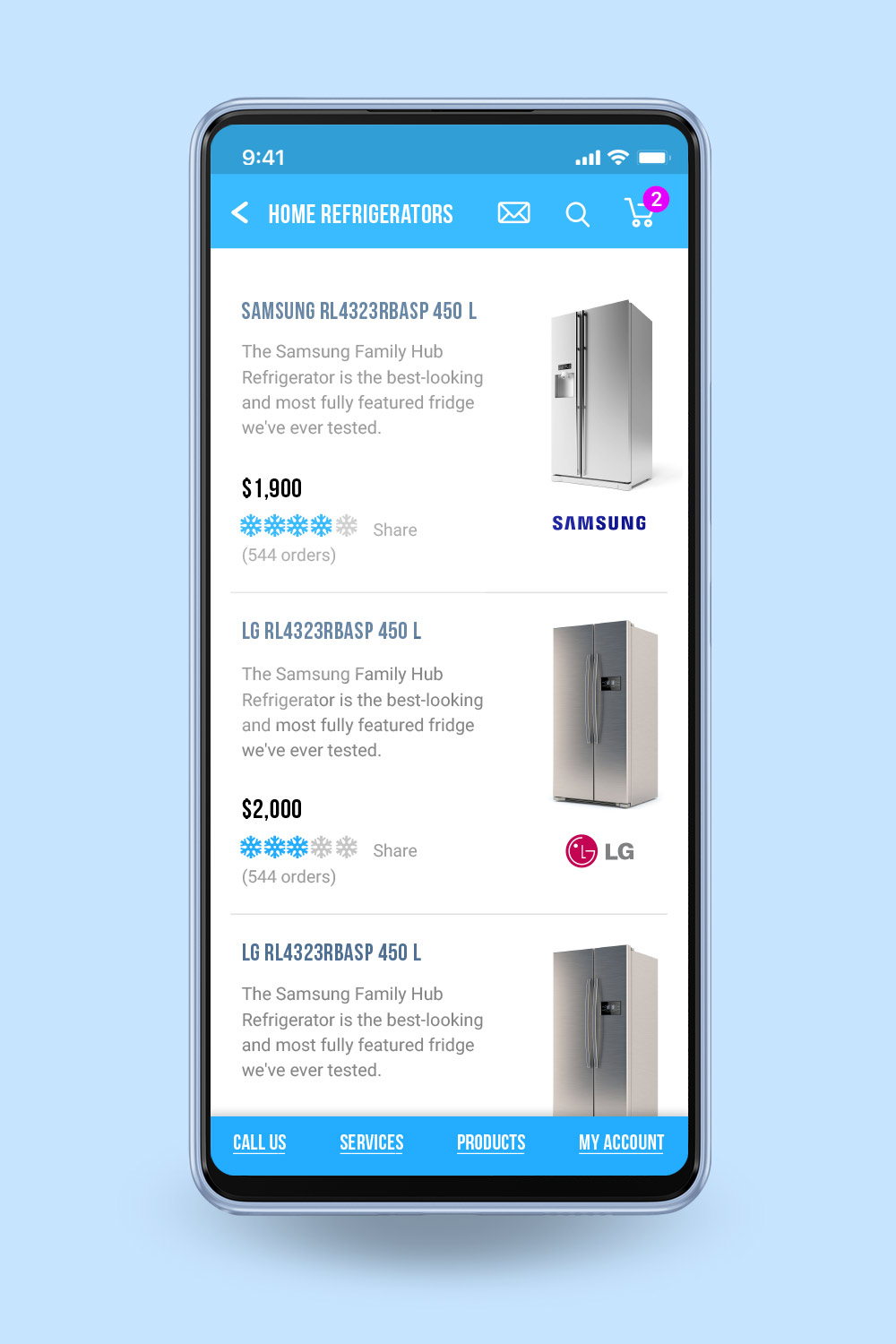 עיצוב אפליקציית חנות מכירת מקררים ושירותי תיקונים